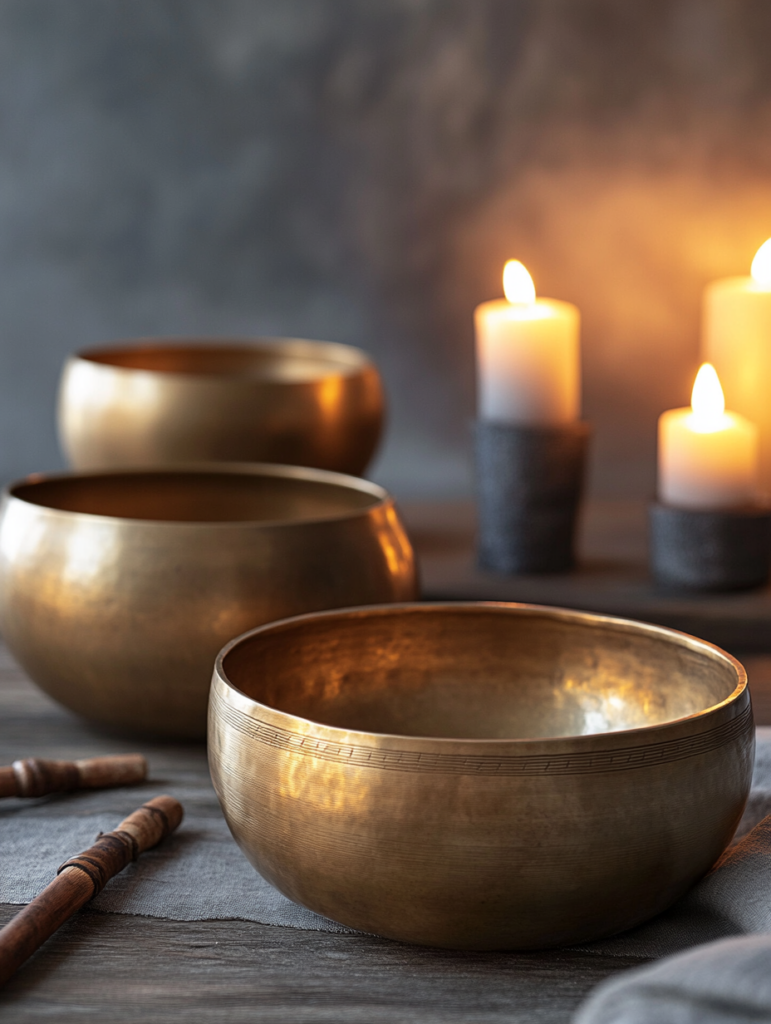 Les bols chantants produisent des fréquences sonores qui peuvent synchroniser les ondes cérébrales. En écoutant ces sons, le cerveau tend à s’aligner sur les fréquences alpha ou thêta, facilitant ainsi un état de relaxation profonde similaire à la méditation.